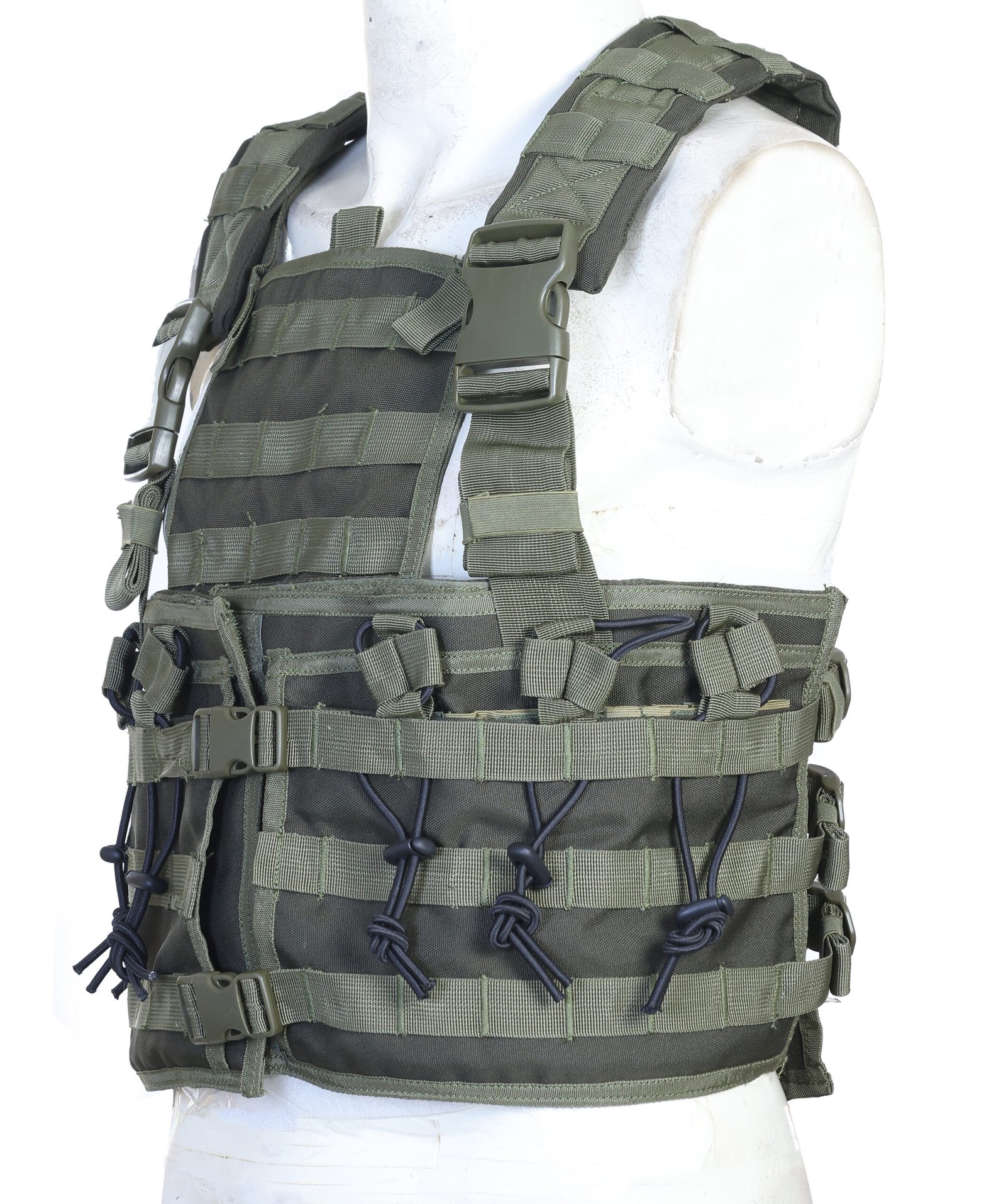Constructed from 100% high-tenacity polyester, this chest set delivers durability and reliability under demanding conditions. It features six built-in open-top AR/M4 magazine pouches, allowing fast and efficient reloads during combat or training scenarios. The heavyweight webbing system supports modular attachments, enabling users to customize their loadout based on mission requirements.
