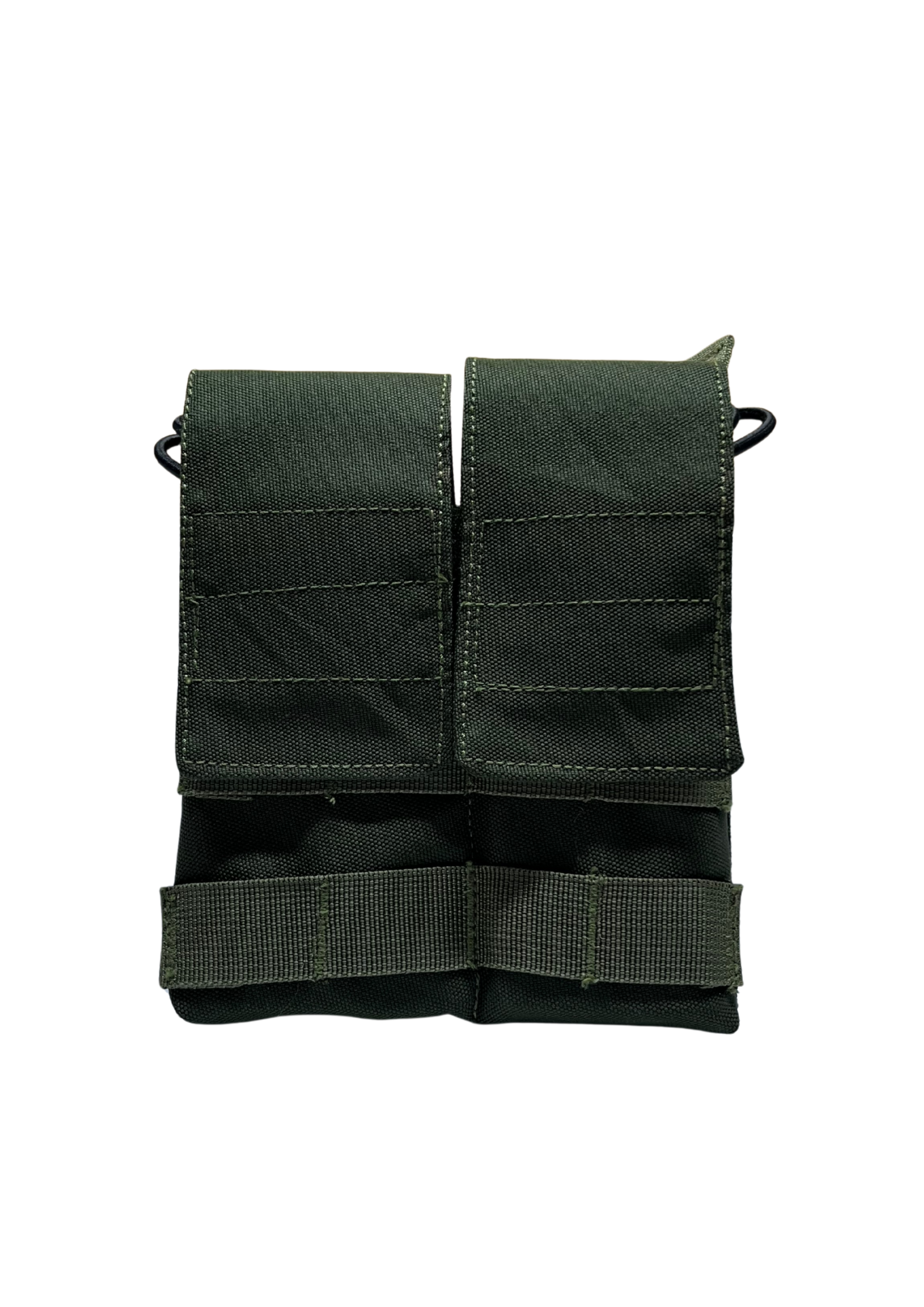 Durable Double M4 Mag Pouch with AR/M4 compatibility, adjustable hook & loop flap, elastic retention system, open-top conversion option, and MOLLE attachment for modular tactical loadouts.