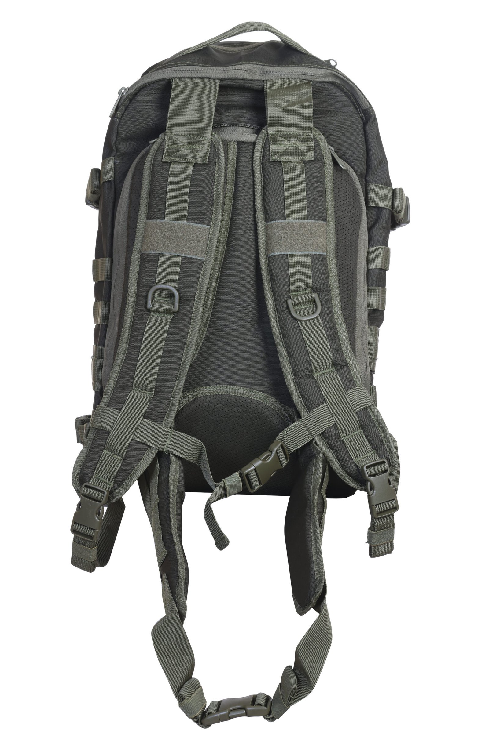 Comfort is enhanced through a padded back mesh panel that promotes airflow and reduces heat buildup. Contoured shoulder straps with integrated D-rings and sternum straps provide stability during movement, while the detachable waist strap offers additional load control when required.
