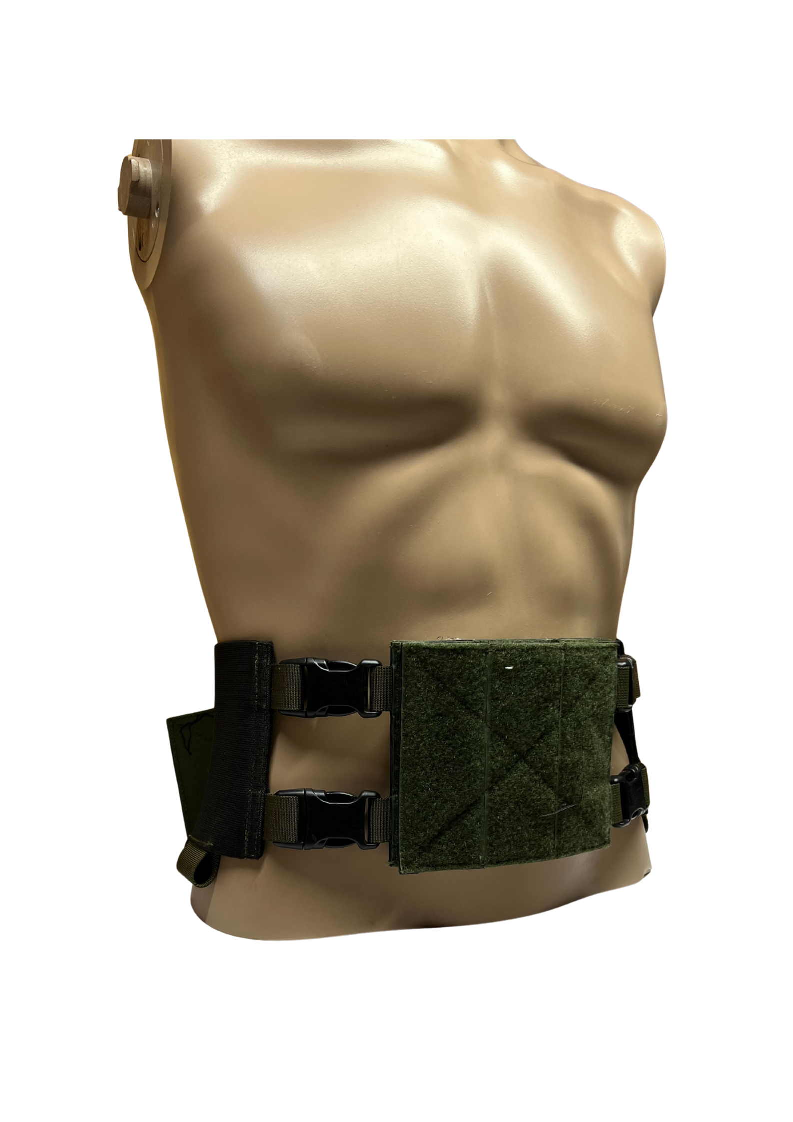 The belt is equipped with dual side-release buckles that provide quick, secure fastening and easy removal during high-tempo operations. Elastic side sections enhance flexibility and deliver a stable, body-hugging fit that remains secure during movement such as running, kneeling, or prone positioning.