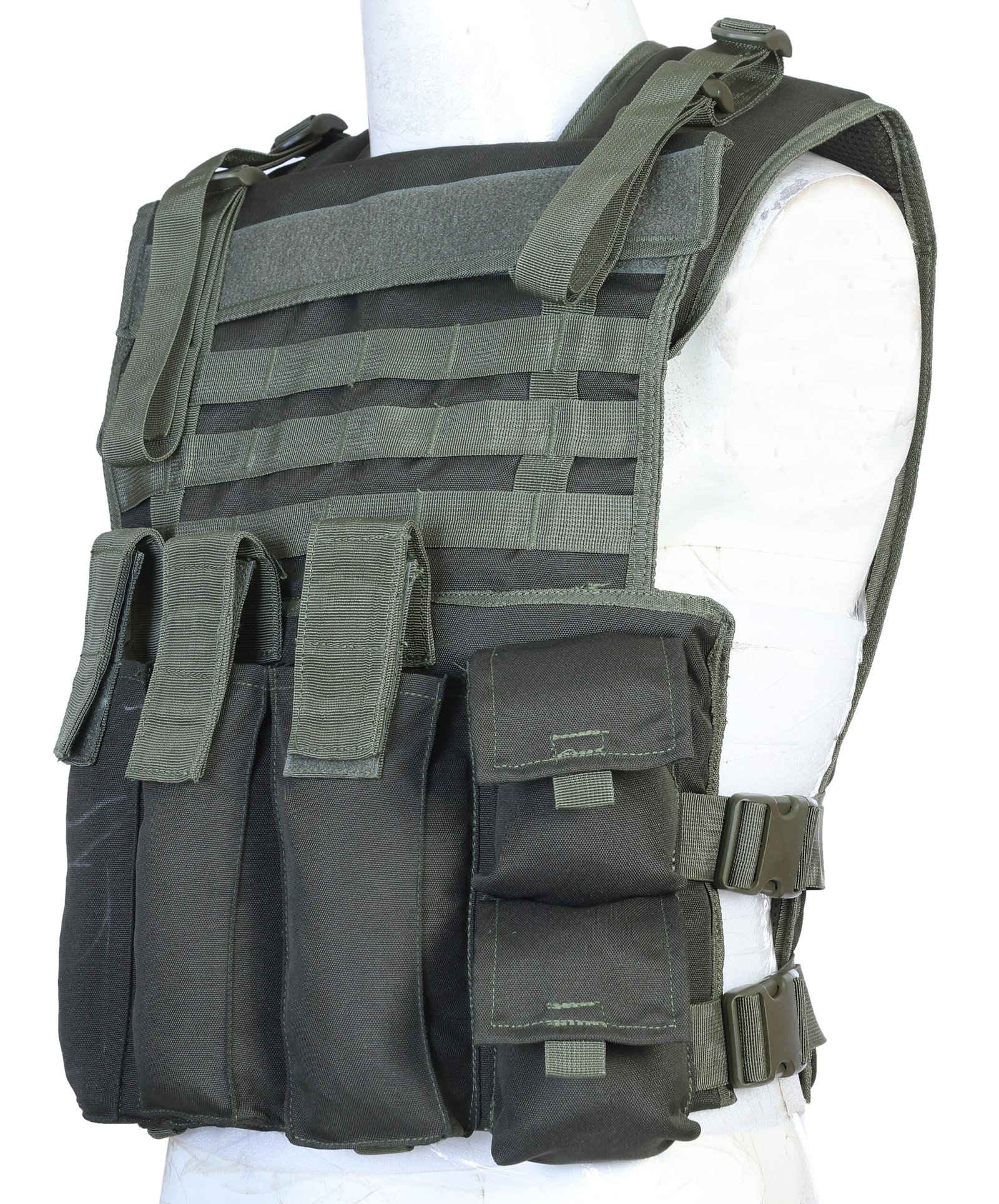 Stay mission-ready with the Tactical MOLLE Combat Chest Rig, featuring front multi-mag pouches, side utility storage, modular MOLLE webbing, and adjustable shoulder straps. Built from durable tactical fabric with a lightweight design, it delivers mobility, adaptability, and reliable performance in demanding field operations.