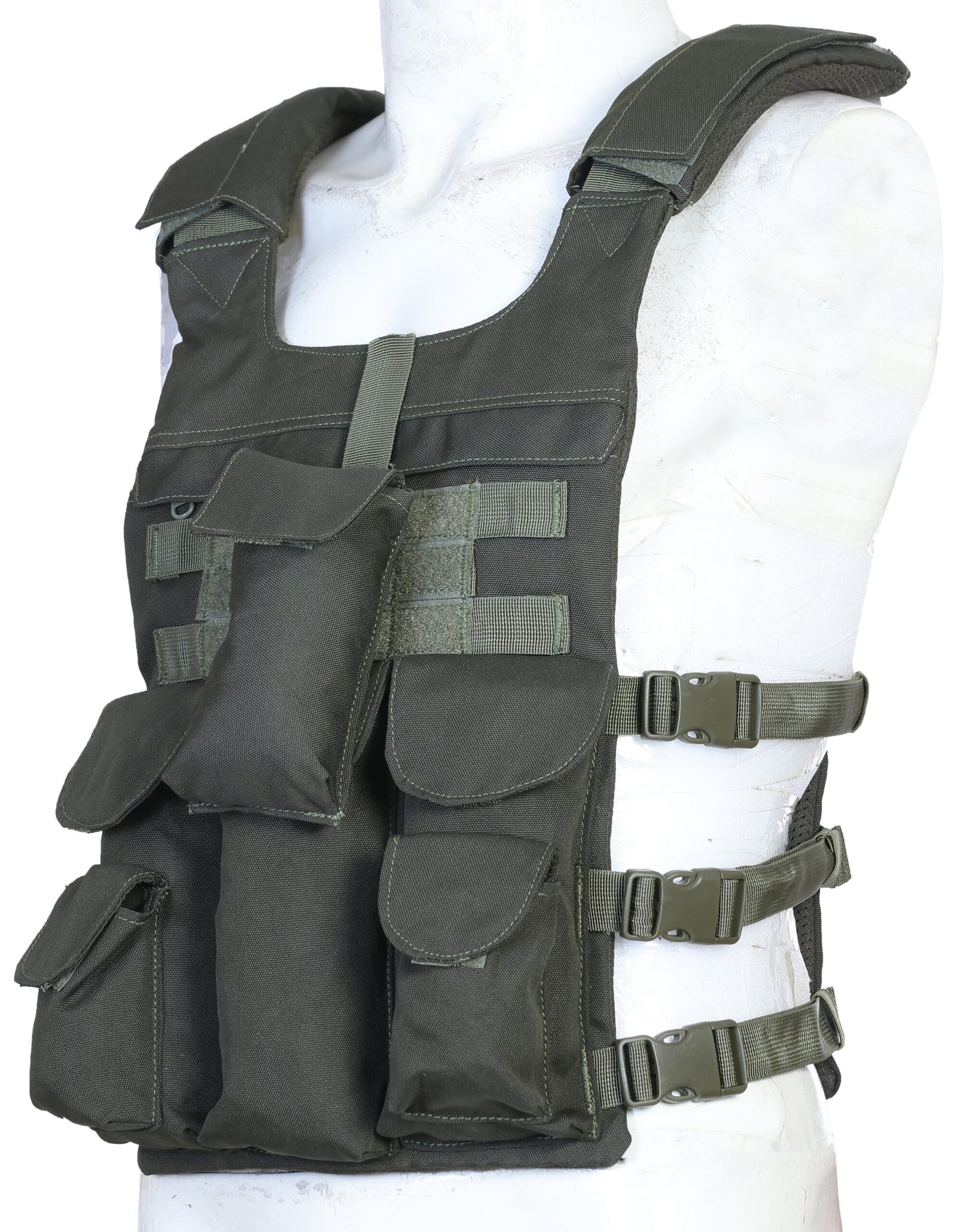 Constructed from 100% high-tenacity polyester, the vest utilizes heavy-duty tactical fabric capable of withstanding rough handling and demanding field conditions. The rig features vertical multi-mag front pouches for rapid ammunition access, complemented by a central tall utility/radio pouch to securely carry primary equipment or communication devices. Two side flap pouches with buckle and strap closures provide safe storage for small tools or first-aid essentials.
